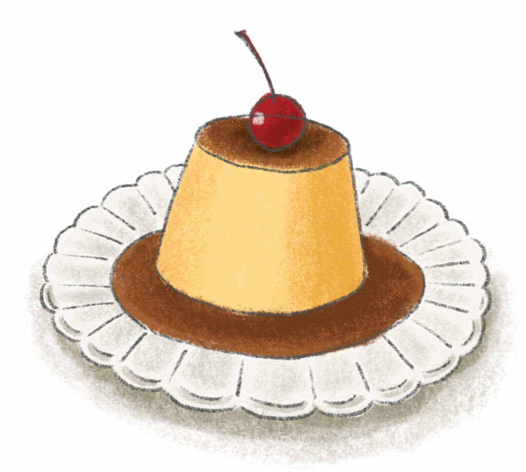 可以使用Oil Pastel Bleding,畫起來紋路會更明顯一些,可以畫在需要蠟筆紋理效果或是陰影的地方,以布丁這組範例來說,我是在畫盤子凹陷處的時候使用。